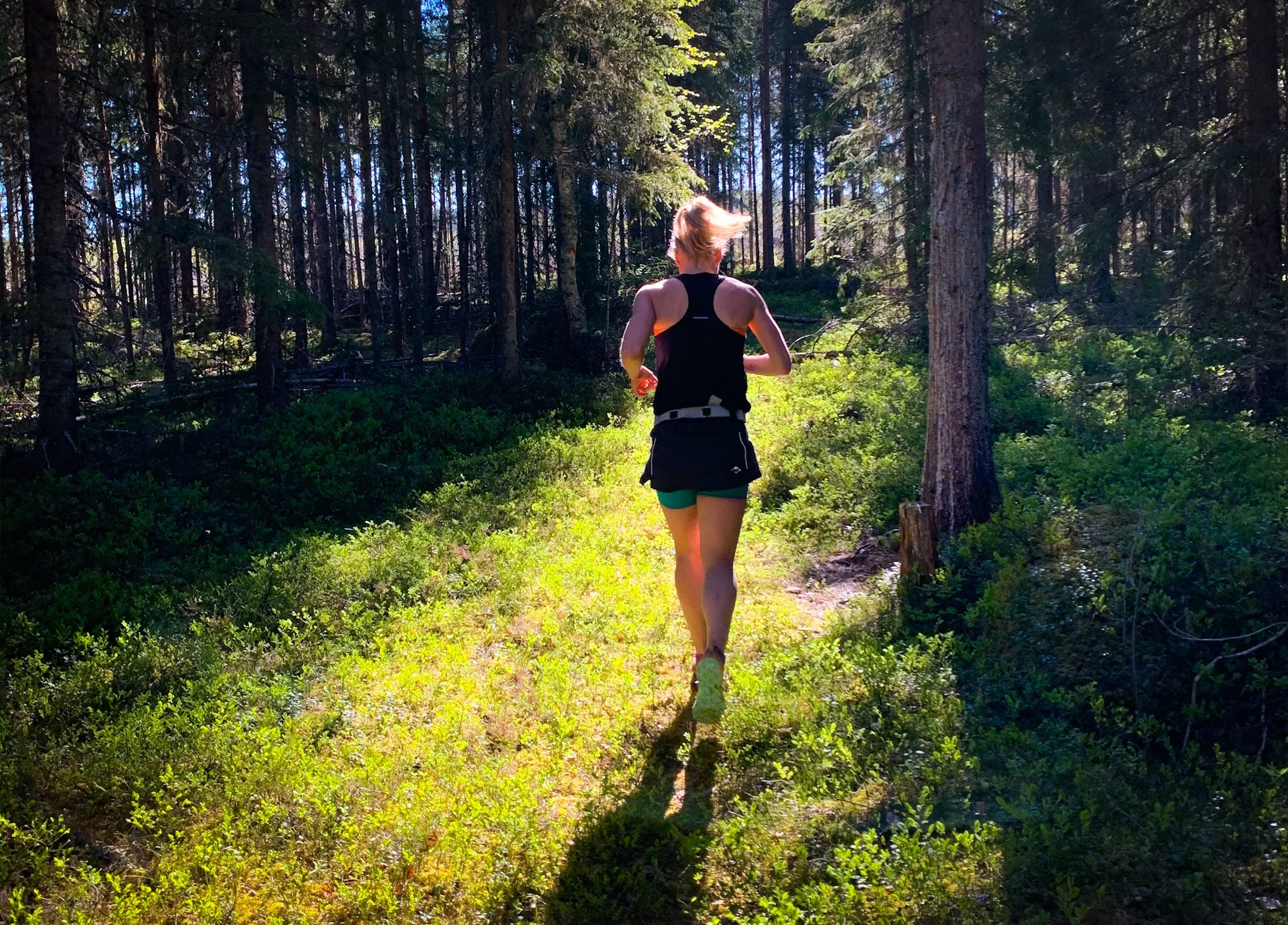 Flera kortare löppass med inslag av kvalitetsträning.